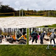 Mit „Baggern“ kennen sich die Volleyballer ja bestens aus. Am letzten März-Wochenende wurde aber nicht das untere Zuspiel trainiert, sondern ein Dutzend Mitglieder der Volleyball-Abteilung kümmerten sich darum, mit Spaten und Rechen mehr als 50 Tonnen Sand zu verteilen. Baggerfahrer Kalle war über 100 Mal unterwegs, um diese Menge mit einem gelben Schaufel-Bagger, im großen Sandkasten abzuladen.